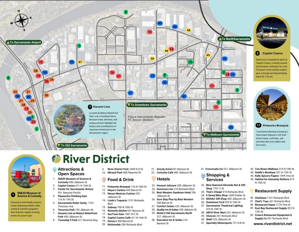 Welcome to the River District! This visitor’s guide and map is designed to highlight the destinations in our neighborhood. We have so much to offer, and it’s all here in this downloadable guide!