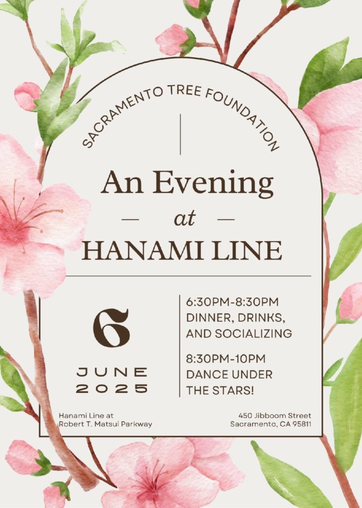 Please join us for An Evening at Hanami Line, the 2025 Sacramento Tree Foundation fundraising event! Enjoy the natural beauty of our park with its charming pathways, distinctive twig benches, and verdant landscape. Savor seasonal, locally sourced cuisine from Food Simply, a 2024 “40 Under 40” awardee, along with refreshing drinks and dancing under the stars. Throughout the night, guests will have the chance to win unique experiences from across the Sacramento region. All proceeds directly support our community forestry programs, helping bring trees to underserved neighborhoods and expanding environmental education throughout Sacramento. |
